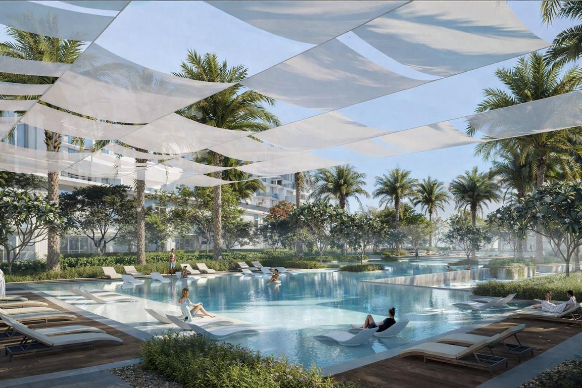 Sera 2 ist ein exklusives Wohnprojekt von EMAAR, das im prestigeträchtigen Distrikt Rashid Yachts & Marina modernen Luxus mit maritimem Lifestyle verbindet. Die Architektur besticht durch eine zeitgemäße Formensprache und großzügige Glasfronten, die sich nahtlos in die küstennahe Umgebung einfügen. Im Mittelpunkt stehen weitläufige Außenbereiche mit kristallklaren Pool-Landschaften und markanten Sonnensegeln, die eine entspannte Resort-Atmosphäre direkt am Wasser schaffen. Diese grünen Oasen und gepflegten Parkanlagen unterstreichen den Fokus auf ein hochwertiges, naturnahes urbanes Leben.