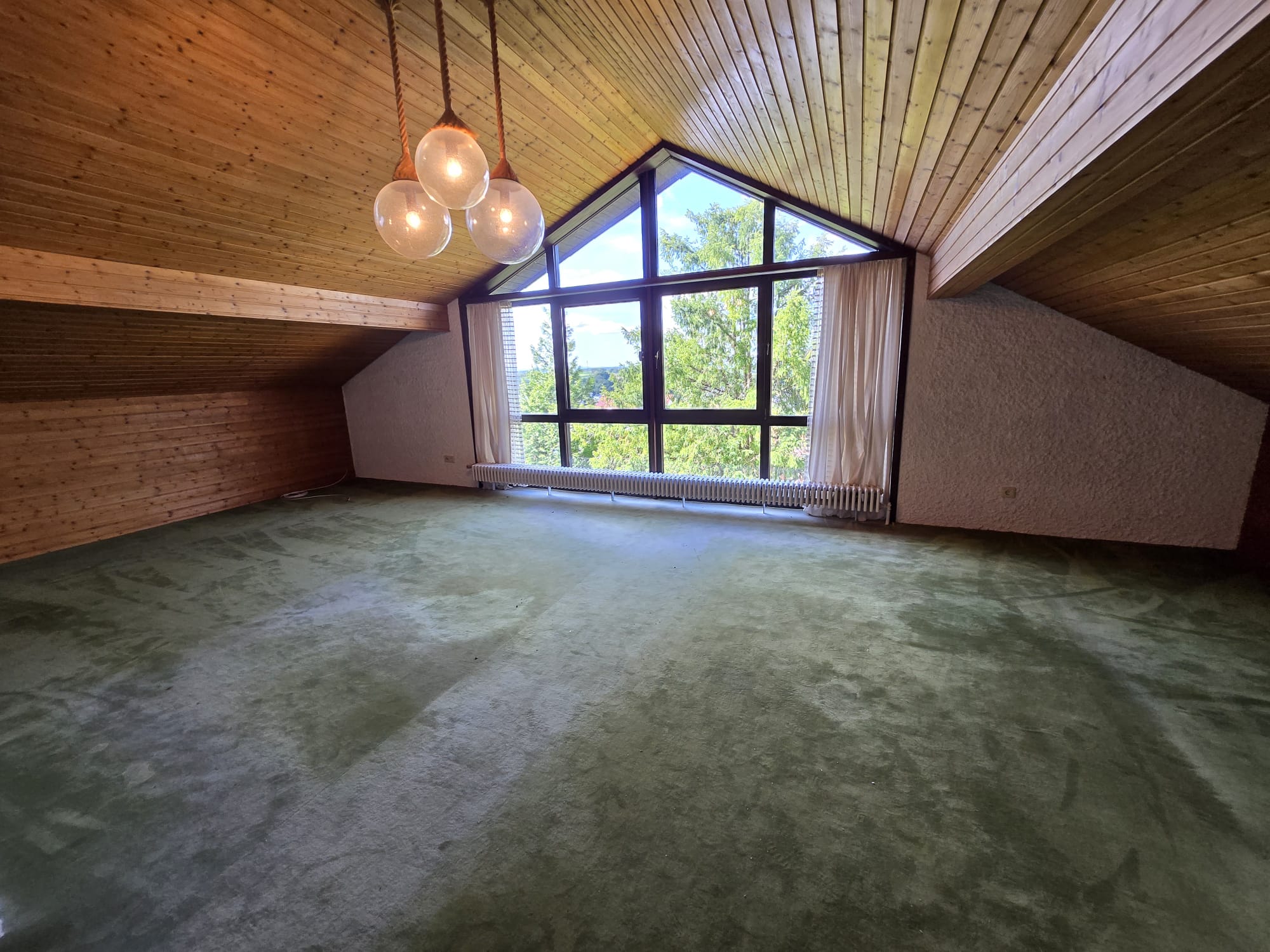 Desweiteren befinden sich im Dachgeschoss zwei großzügige Zimmer mit hoher Deckenhöhe, die ein besonders offenes Raumgefühl vermitteln. Abgerundet wird das Angebot durch eine großzügige Garage sowie ein Carport.